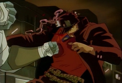 Dio tells him to hold his tongue, and stops time again. The World punches Jotaro again, but Dio then sees something: Star Platinum is somehow protecting Jotaro, even when time is frozen! |