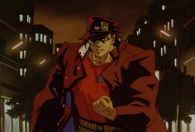 As long as he lives, he won't forget about this journey. He tells Kakyoin, Iggy and Avdol that it's over. |