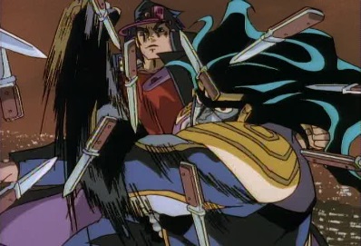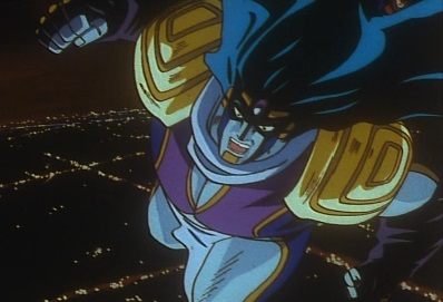 He says he's just thought of a way to execute him, and pulls out several knives. He thinks Jotaro has gone pale, has he realized that his end will be more terrible that Joseph's? Jotaro jumps straight up high into the air, but Dio tells him it's useless -this is checkmate! He stops time again. |