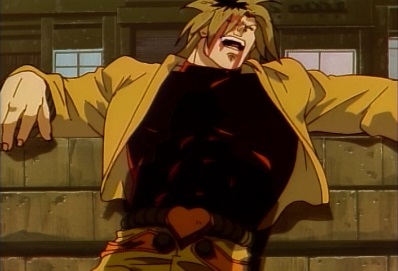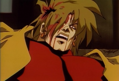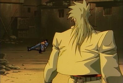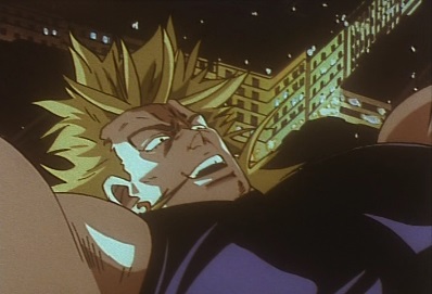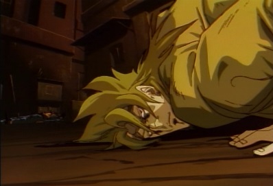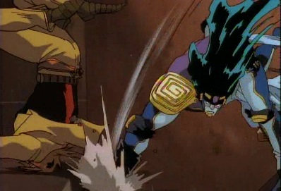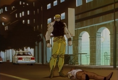 Jotaro then revives, as Star Platinum appears and punches Dio in the head. Dio is sent bouncing off a truck, and lands on some steps. |