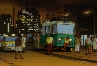 He and Dio fight in in the air, but Dio eventually hits Jotaro into a nearby tram. Dio then enters the tram. |