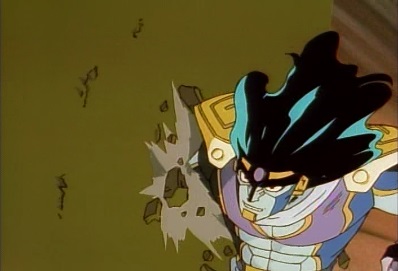 Jotaro bursts out of the pillar, and Star Platinum starts punching Dio. Dio calls that a useless trick, and hits Jotaro back down. |