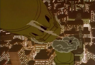 He slams it down onto Jotaro, but Jotaro is able to move in frozen time, and has Star Platinum start punching it. Dio starts punching back, and keeps yelling it's useless. Star Platinum continues punching, but the tanker continues to descend. |