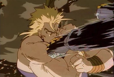 But Star Platinum then stops moving in the frozen time. Dio tells Jotaro that was quite impressive, as he's actually managed to prolong the amount of time he can move around. But he's feeling more and more powerful, and he, Dio, can now stop time for longer! He has the World attack again, as Dio says this is all thanks to Joseph's blood... this is the greatest high! |