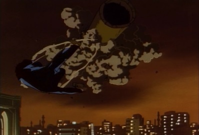 Jotaro thinks that not being able to see Dio is bothering him, but it doesn't matter. He's decided on what he's going to do, and as long as he can move, he'll put Star Platinum up against him. He's very certain that the next time he sees Dio, he's going to go totally berserk! He wants Dio to come on, but then notices a shadow over him. Up above, Dio has picked up an oil tanker. |