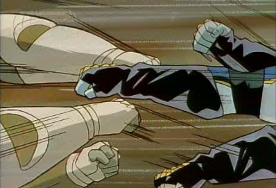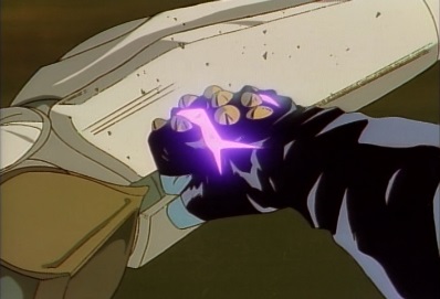 Dio stops time, but Star Platinum and the World both move inside the frozen time for several seconds. Star Platinum punches the World's hand, breaking it. |