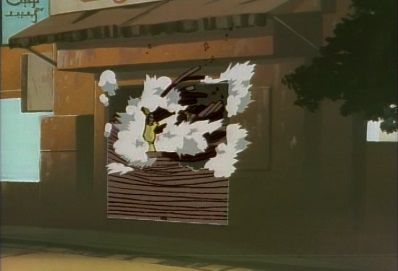 ...and he is sent flying into a butcher's shop. Time resumes, and Jotaro is knocked around. But he gets up and says that without any conscious effort, Star Platinum has been protecting him. He briefly thought he saw his Stand moving during the frozen time. |