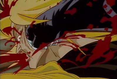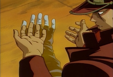 The World is about to attack again, but Star Platinum suddenly moves, and hits the World first. Dio's hand is cut... |
