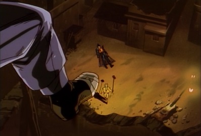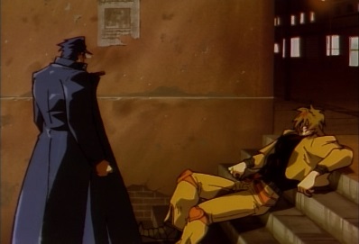 Jotaro then walks up to him and tells him he won't be forgiven, so he should resign to his fate. Dio starts laughing, and Jotaro gets ready to finish him off. |