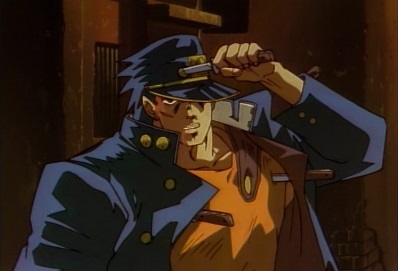 He throws out more knives, and tells him if he doesn't do something about it now, he's going to have problems later. Jotaro manages to move, but only for an instant -Star Platinum is able to do a single punch which knocks away some of the knives, but many of them are still in place. |