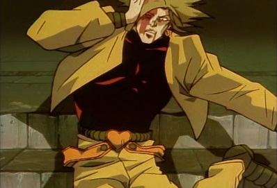 Polnareff tells Dio to go to hell. Dio stops time, and is surprised to see Polnareff -he can't believe that Vanilla Ice failed! |