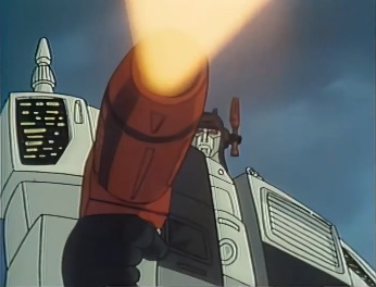 Scramble City is completed, and rolls out along with Ultra Magnus and the Protectobots. The group arrive at the battle, and the Protectobots unite into Guardian. But it turns out he's not needed, as Scramble City transforms into a super colossal robot called Metroflex. He fires a single shot that blows both Bruticus and Menasor away! |