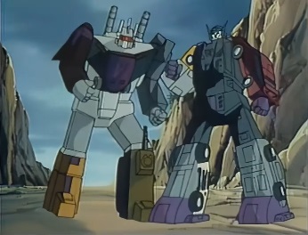 However, due to a mix up by Firebolt, Superion loses a leg, and Menasor fires one of his arms at him. His arm attaches to Superion's leg, and immobilizes him. Convoy shoots it off and Firebolt reattaches, and manages to defeat Menasor. But then, the Combatrons arrive, and they transform and unite into Bruticus. Bruticus helps Menasor back up, and the two quickly turn the tables on Superion. |