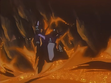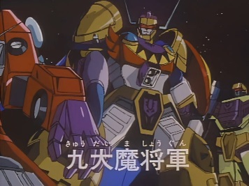 The Nine Great Demon Generals -Menasor, Abominus, Devastor, Dinosaurer, Black Zarak, Bruticus, Predaking, King Poseidon and Overlord -gather together. Overlord says they hail their new Emperor of Destruction: Lord Violengiguar! Violengiguar says that the Cybertron's Supreme Commander, Victory Saber, has vanished like the dust of space. |