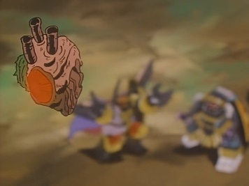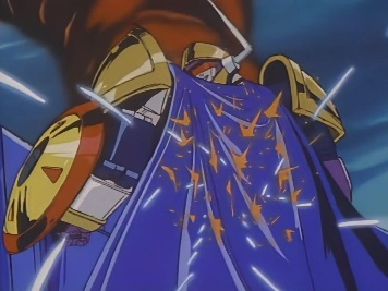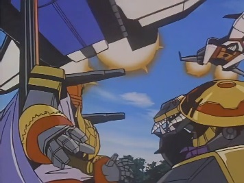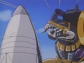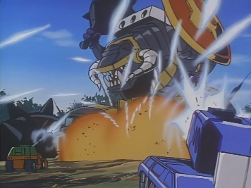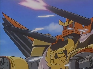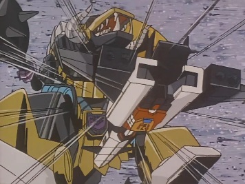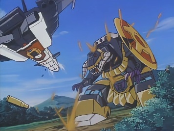 ...which knocks Dai Atlas over. Dinosaurer looms over him and fires again, but Sonic Bomber gets in the way and takes the hit. |