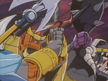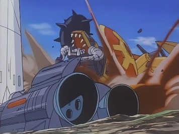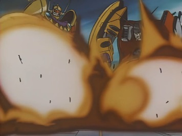 ...and Sonic Bomber are able to transform into new base modes. The Destrons charge forward, but Dai Atlas and Sonic Bomber use their new zone mode attacks. |