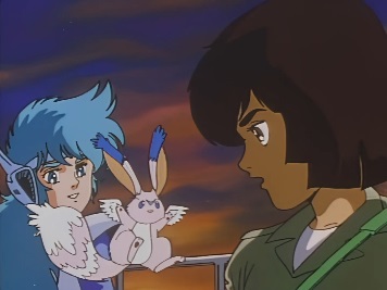 Whisper takes Akira back up to the rocket, where he meets Cain, Emusa and Moonradar. Cain tells him he's safe now, and says he and Emusa are from planet Feminia. He says the Earth is a beautiful planet, and Emusa thinks it's so full of nature. |