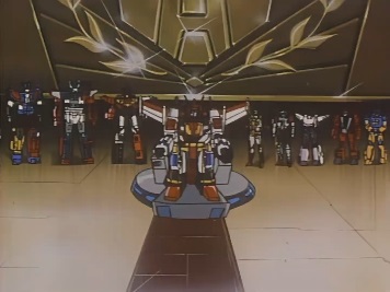Sometime later, a ceremony takes place on Zone. Victory Saber says that on behalf of all Cybertrons, he appoints the Powered Master Dai Atlas as the new Supreme Commander. |