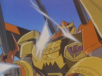 They then get sent flying when three of the Destron generals -Overlord, Abominus and Menasor -fly over them. Overlord creates a spear... |