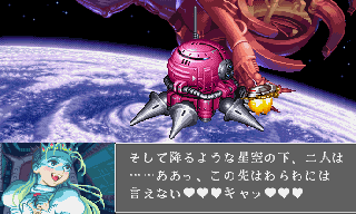 And so it was that Princess Devilotte became the evil Empress of the entire galaxy, and the Death Satan Royal House ruled over all star systems, thriving by oppressing and exploiting the people. Princess Devilotte would later bring the entire universe under her control, taking the title "The Fiendish Heavenly Empress Lovely Devilotte," but that is a story for another time. Thus concludes "Super Galaxy Legend Chapter Thirteen: Devilotte Forever." |
