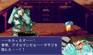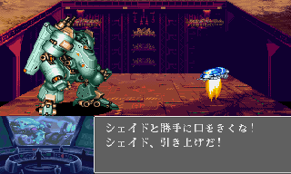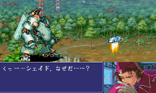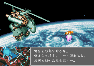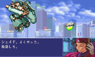Jin: I know who you are! You're Eichmann... you killed my father...! Shade: ...Eichmann...? Jin: One day I will defeat you! And then I will take revenge for my father...! ?: Shade spoke of his own volition! Shade, withdraw now! Shade: Acknowledged. ?: From here on, we will begin collecting actual combat data. ??: Good. I'm counting on you. |