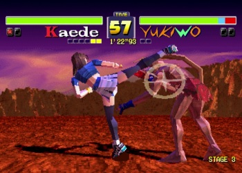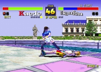 Playthrough with Kaede, using her Taekwondo style. I set the difficulty to very hard as this game's difficulty doesn't seem to matter, it's difficult no matter what you choose. To get the 1CC you want to use throws as much as possible, but they seem glitchy at times and won’t work -sometimes, when you’re standing right next to your opponent and try to throw, nothing happens. It’s still the best strat though, there is no way to escape throws, and no whiff animations for missing throw attempts either. With Kaede, try doing her cartwheel attack (forward, forward+kick) and see what happens. If the CPU gets hit, do the cartwheel again once they’re back up. If they block the cartwheel, try and do her back+throw. This throw is really good since it puts the opponent a decent distance away from her. |