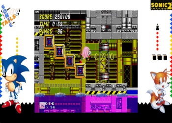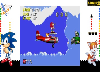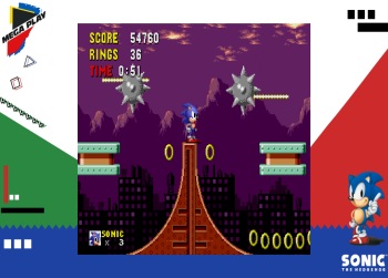 This version includes the Mega Play version of the game, which was originally released in arcades. The Mega Play version removes several levels, and also gives you a set amount of time to finish each act -if you run out of time, you did. You also don't get an extra life if you collect 100 rings in this version, and all the extra life monitors don't actually give you an extra life. As it's still Sonic 1 it's not that hard, but the low time limits mean you can't dawdle. The special stages were also removed from the Mega Play version, but the game still gives you the good ending regardless. |