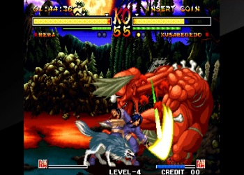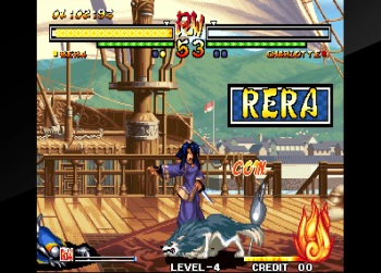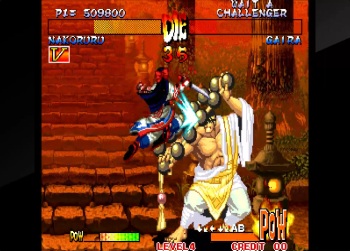 Playthrough with Nakoruru. This game… well I’ve complained about it before. It’s far too hard, honestly I think it actually might be harder than the previous game overall. The CPU tends to either block everything, counter everything and gets massive damage boosts. Plus they always seem to get the health items thrown right at them. If your character has a command grab then it makes things a lot easier, but even then this is not an easy 1CC. What you need to do is jump towards the opponent and do an air A or B attack, which should cause the opponent to block. Then as soon as you land, do your command grab. Then keep doing this. The problem with this is every opponent seems to have drunk a ton of coffee before they fight, so they’re hyperactive and rarely stay still. Plus they often move around when they get up, making timing the next jump-in difficult. What makes this harder with Nakoruru is that her command grab does little damage. Some characters do tend to get hit by her jumping heavy slash so there’s that. But that’s really all she’s got in terms of defeating the CPU. Her weapon break move is way too hard to do and even if you manage to do it, 99% of the time the CPU blocks it anyway. |