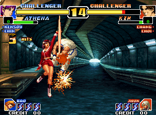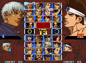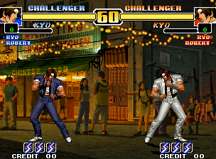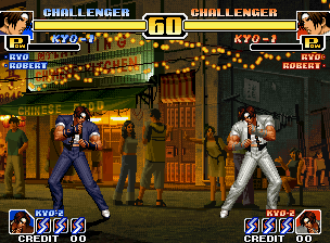 | Whilst the Kyo clones have their numbers at the character select and versus screens in the prototype, they don't have them under their life bars, or if they are a striker. If you have either of the clones as a striker, their portraits are missing in the prototype. All of these things were fixed for the final version. | |