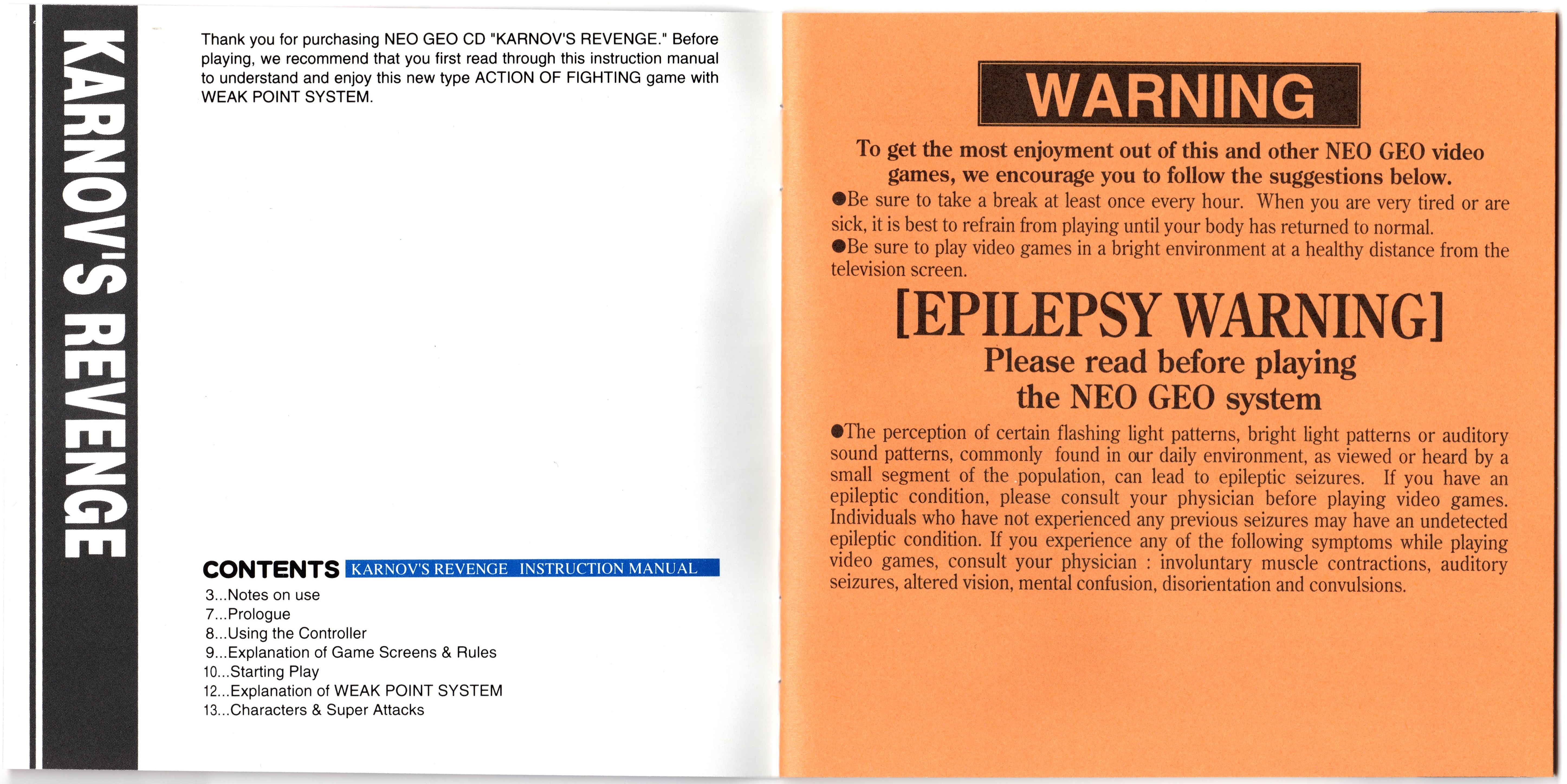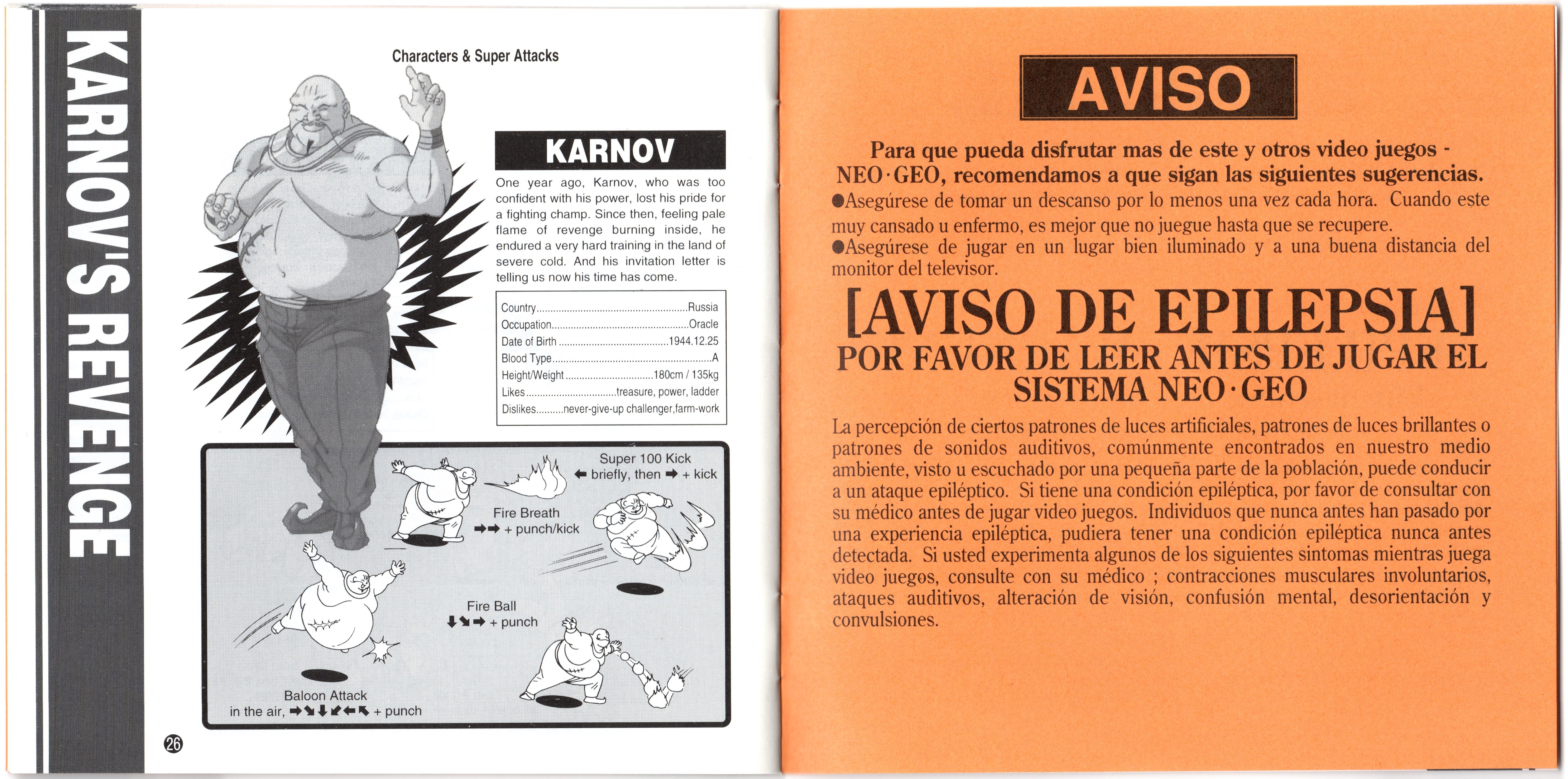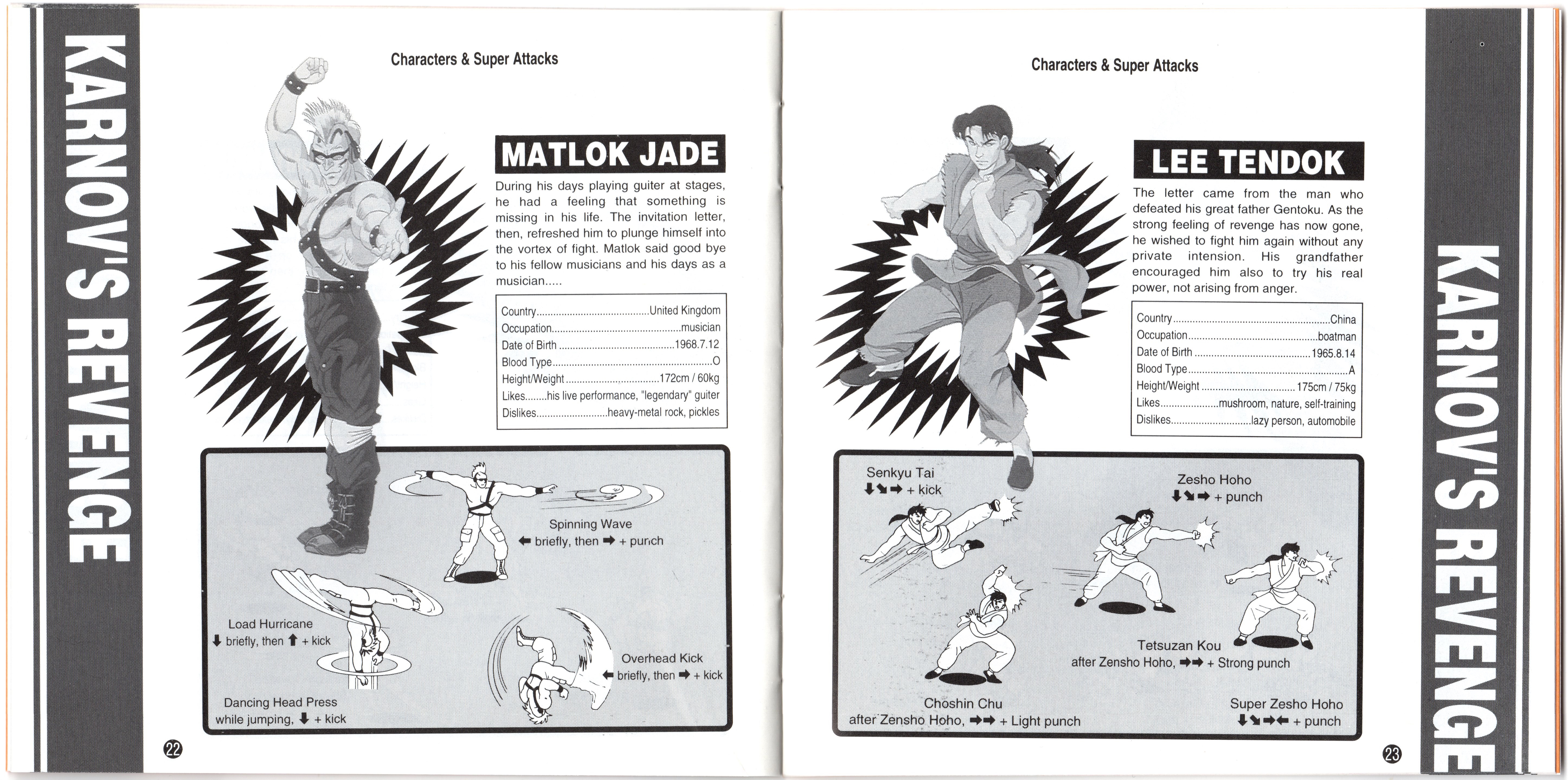 NOTES -When compared to the manual for the Japanese version, there are a few changes to certain character's stats for the English version's manual: |