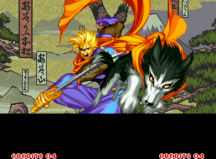 | In the intro, Genjuro's sprite is colored red in places, which would be changed to pink for the final game. | |