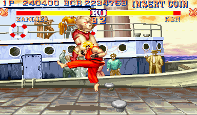 Charge times for certain moves were also removed, so Guile, for example, can do his somersault kick just by pressing down, up and kick. Other moves have different features, such as projectile attacks homing in on the opponent, or Ryu's hurricane kick sending him flying across the screen. |
